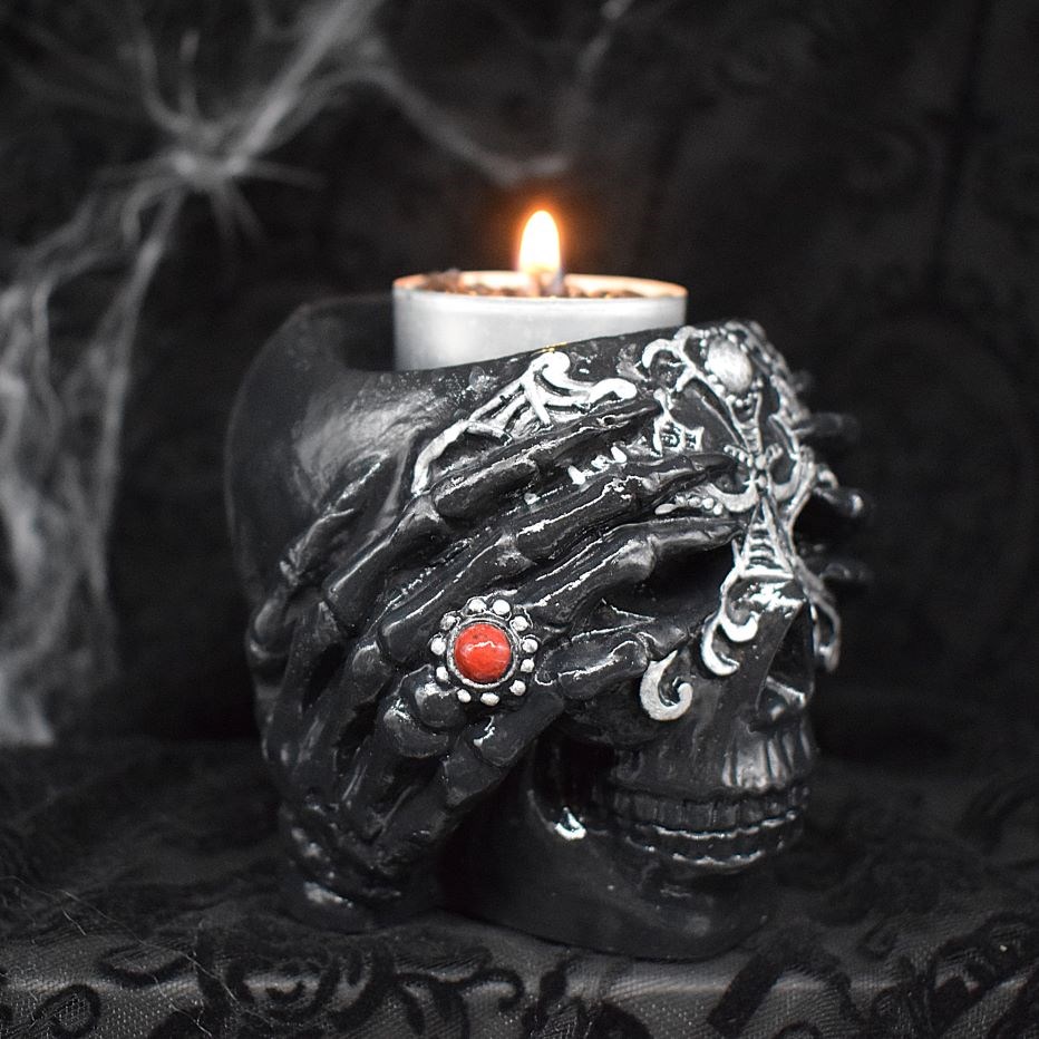 Подсвечник "Мистериум" - это врата в тишину. Серебряная паутина и забытое кольцо — знаки его прошлой жизни. В его жесте не страх, а отречение от суеты мира, приятие покоя, который нарушает лишь трепетное пламя свечи. Это воплощенная медитация на грани света и тьмы.