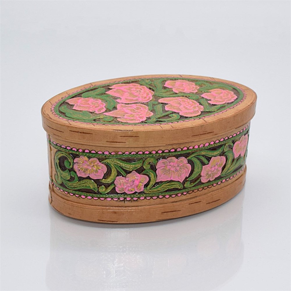 Шкатулка "Пионы" выполнена из натуральной бересты с особым мастерством и вниманием к деталям. Декоративный раскрас полностью наносится вручную акриловыми красками. С внешней стороны изделие покрыто лаком, что обеспечивает долговечность в использовании и придает поверхности глянцевый блеск. Внутри шкатулки сохранен первозданный вид бересты, благодаря чему можно ощутить себя ближе к природе.